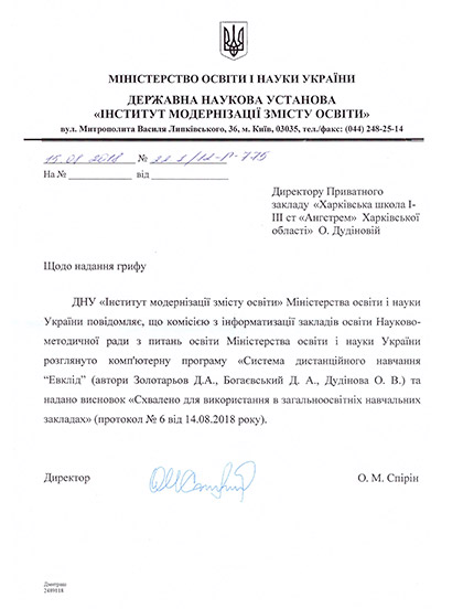 - Гриф МОН України «Схвалено для використання у загальноосвітніх навчальних закладах»